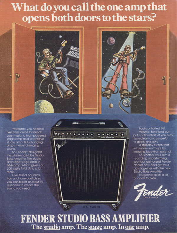 So whether your aim is recording or performing. See your authorized Fender dealer now And get your acts together with the new Studio Bass Amplifier.