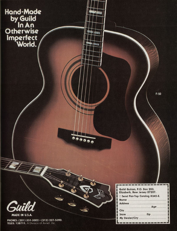 This advertisement for the Guild F-50 flattop came from a 1979 guitar magzine