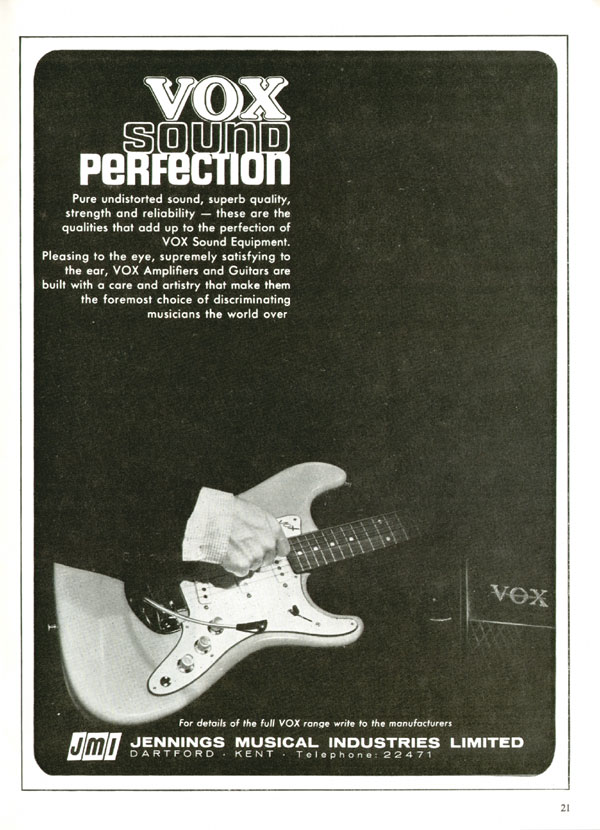 Early British Vox advert from the beginning of 1964. The Stratocaster-inspired Vox Soundcaster was very widely promoted at this time.