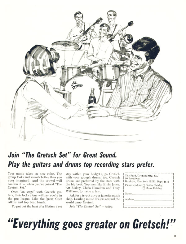 British advert for Gretsch guitars and drums. "Join the Gretsch Set for Great Sound