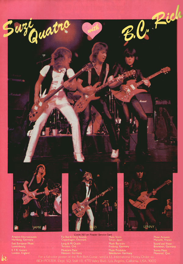 * 3 & 3 headstock, blue BC RICH logo, 4 bolt design