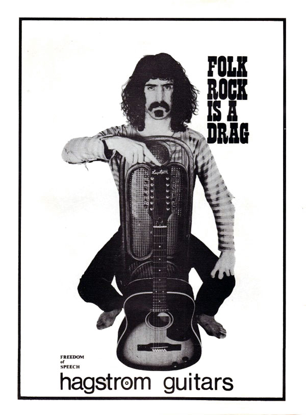 Freedom of speech. Frank Zappa did a number of adverts for Hagstrom in the late 1960s, most notably for the Hagstrom Viking, and the Hagstrom 12 solid body twelve string (F-12S).