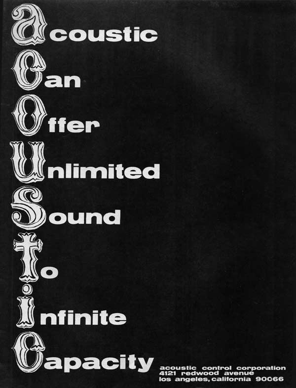 Monochrome advert turning the ACOUSTIC brand name into an acronym