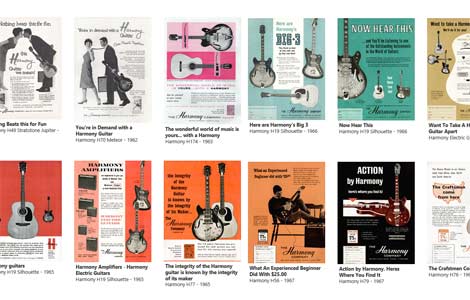 Vintage Harmony guitar advertisements. See also the advertising for Dan Armstrong, Epiphone, Fender, Fletcher, Coppock & Newman, G&L, Gibson, Goya, Gretsch, Guild, Hagstrom, Harmony, Hayman, Hofner, Ibanez, Kimbara, Kramer, Leslie, Marshall, Martin, Music Man, Ovation, Rickenbacker, Rose-Morris, Rosetti, Selmer, Vox, WEM, Yamaha