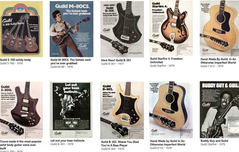 Vintage Guild advertisements; 51 adverts covering a period of 20 years, from 1962 to 1982. Click the images to have a closer look.