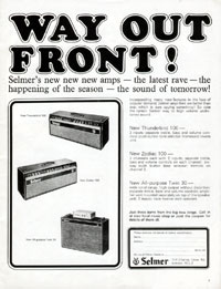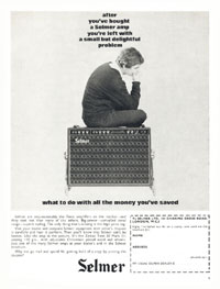 Vintage Selmer guitar advertisements. See also the advertising for Dan Armstrong, Epiphone, Fender, Fletcher, Coppock & Newman, G&L, Gibson, Goya, Gretsch, Guild, Hagstrom, Harmony, Hayman, Hofner, Ibanez, Kimbara, Kramer, Leslie, Marshall, Martin, Music Man, Ovation, Rickenbacker, Rose-Morris, Rosetti, Selmer, Vox, WEM, Yamaha