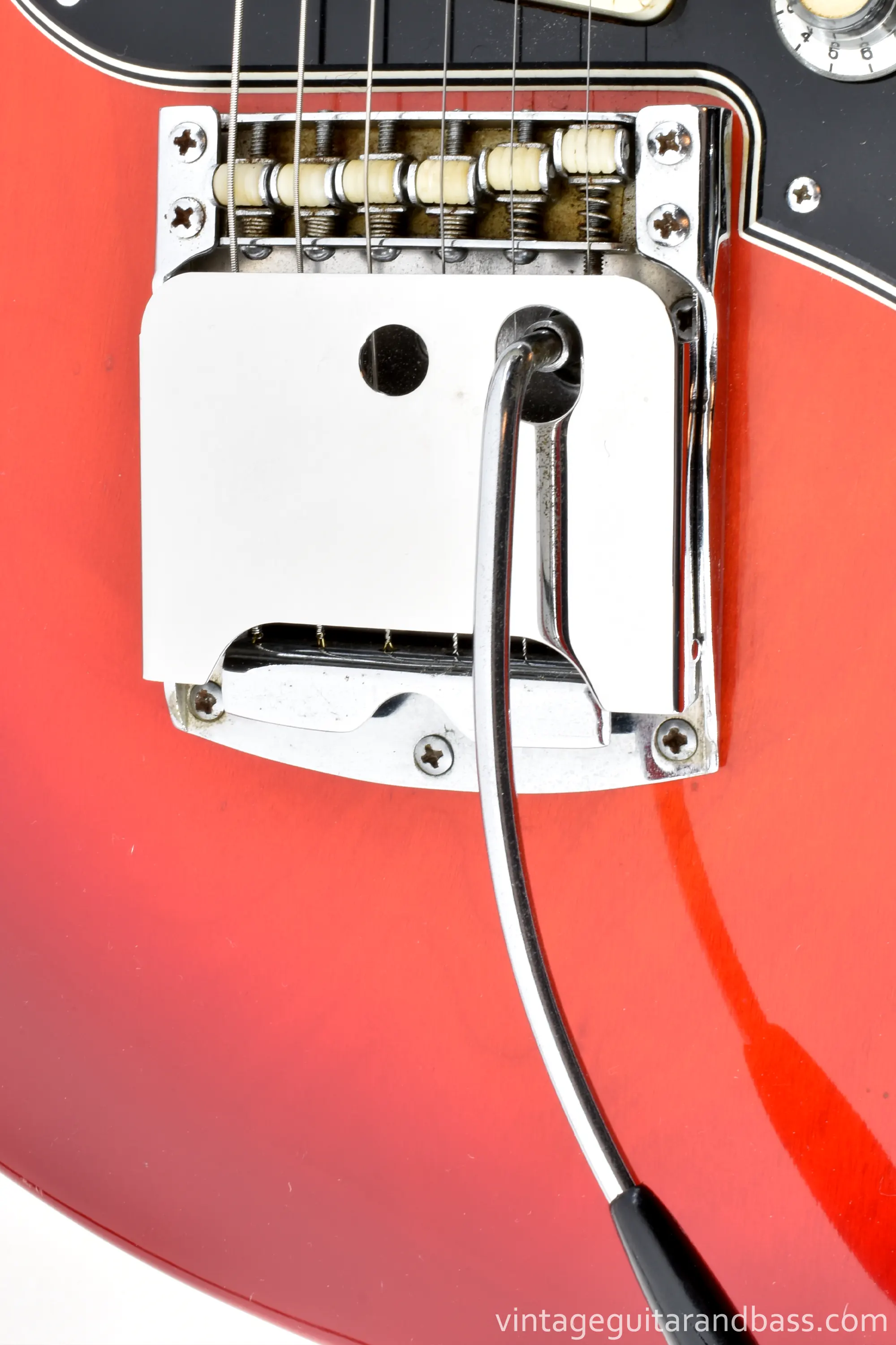 Epiphone 1802T bridge detail. The combined bridge / vibrola tailpiece was first fitted to Matsumoku-built solid bodies from the mid-1960s.