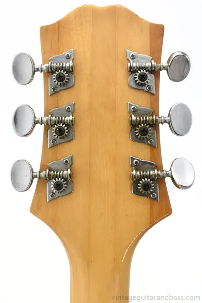 Epiphone 1802T headstock reverse. This guitar is fitted with Japanese open gear individual tuners.