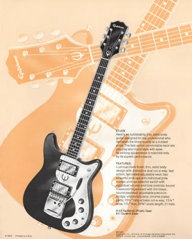The ET-278 was described as follows in the 1971 Pick Epiphone brochure: