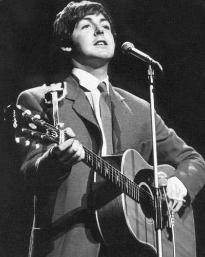 Paul McCartney bought his Natural finished Epiphone Texan in late 1964 - a right handed model that he flipped over and strung left handed. His mid-sixties live performances with this guitar gave the model immediate attention, but he also used it widely in the studio and for writing. In September he performed a solo version of Yesterday on the Ed Sullivan show to an audience of 73 million viewers.
