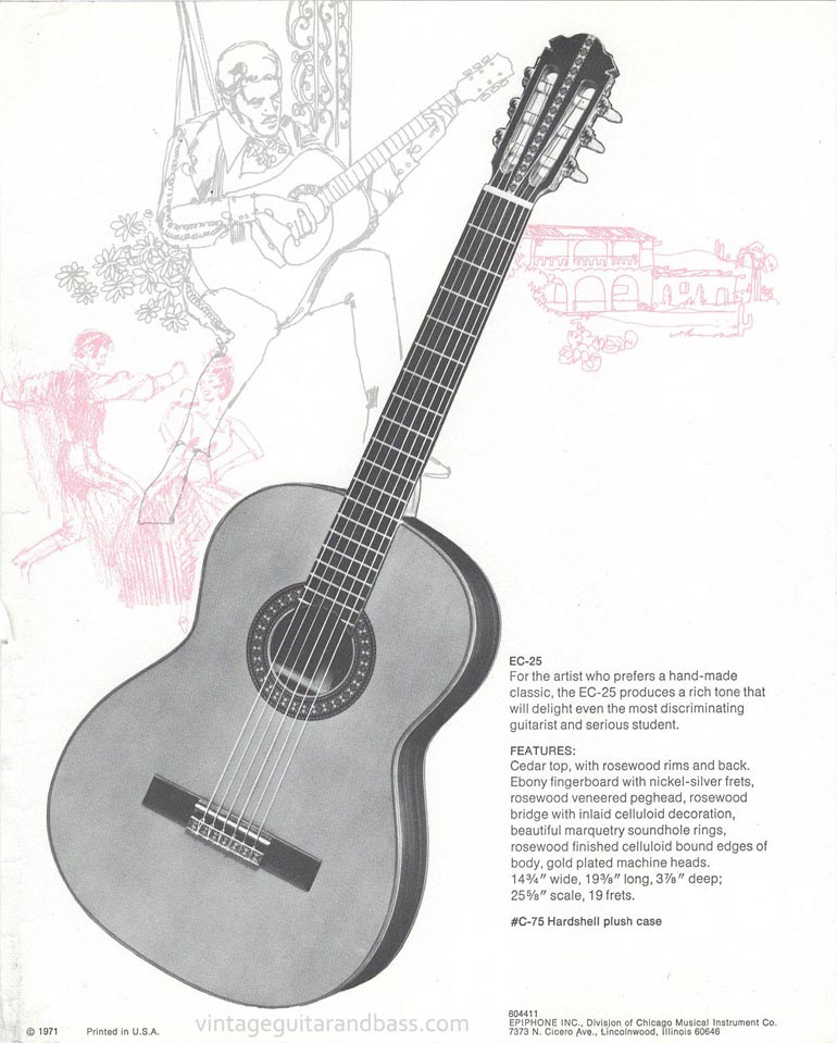 Model EC-25 had a list price (October 1970) of $159.50, and was the most expensive Epiphone instrument available at this time.