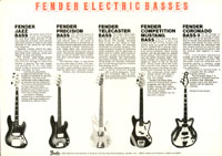 This catalog is undated but was most likely printed in late 1969, to announce the new Fender silverface bass amplifiers. It features Fender's entire range of bass guitars and bass amplifiers, of the time. It is a single folded sheet, measuring 12" x 8 1/2"