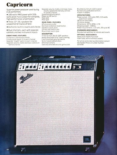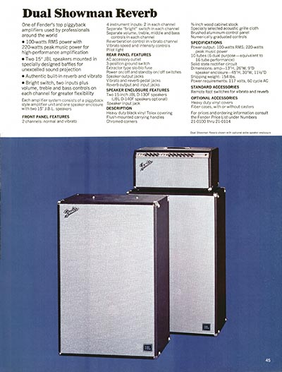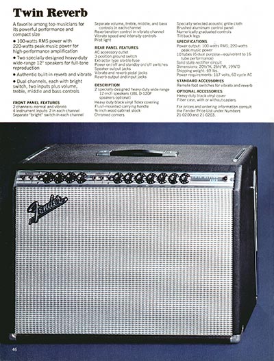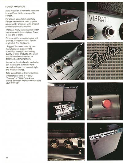 This catalog features the following instruments and amplifiers. Click on the images for full size versions, or click on the model names to jump to the respective page.