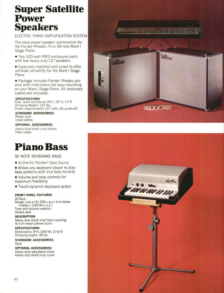 1972 Fender guitar and bass catalog page 62: Fender Super Satellite power speakers