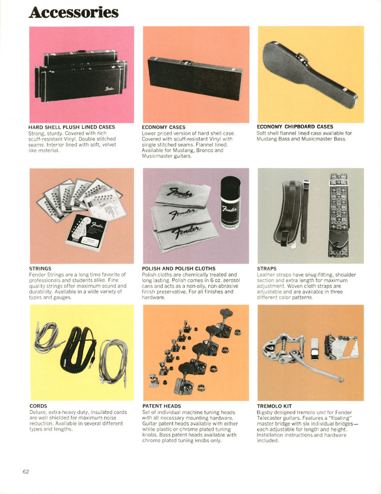 1972 Fender guitar and bass catalog page 64: Fender accessories