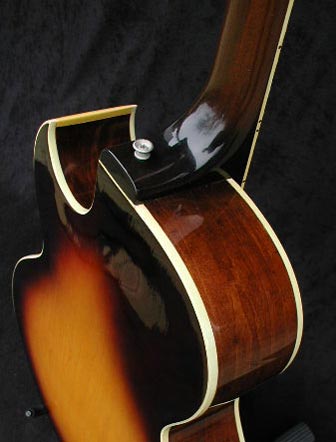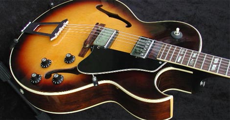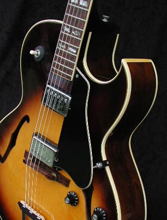 With respect materials, nothing has changed since the very beginning. This guitar still has a maple top, back and sides, with a mahogany neck, although the neck has gone from a one-piece to a three-piece laminate, around 1969/70. Front and back bound, with a bound neck and split parallelogram inlays. Towards the end of the seventies and into the eighties there were bigger changes afoot; first, a laminate maple neck in 1976 (have a look at a 1979 ES-175D), changing back to mahogany, but with additional mahogany back and sides in 1982.