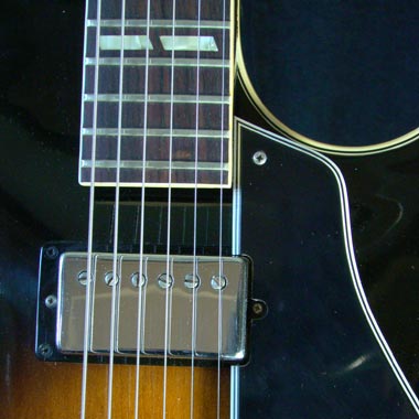 The ES-175D changed somewhat in the mid/late 1970s. First, around 1976, the mahogany neck was replaced by a three-piece maple one, with volute for added strength. Then the hardware was upgraded: a compensated rosewood bridge was replaced with a tune-o-matic in 1977/78, and the tuning keys were switched to Schallers, as shown here. Check out a 1974 ES-175D, which has none of these features.