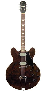 FEATURES: Semi-acoustic body, with solid hard-rock maple center piece. Laminated maple neck. Beautiful Brazilian rosewood fingerboard with miniature block pearloid inlays. Exclusive adjustable truss rod. Decorative, inlay mother-of-pearl peghead. Chrome-plated parts. Tune-O-Matic bridge. Twin chrome-plated Humbucking pickups. Master volume control. Master mixer control. Three-position toggle switch. 1: Normal position for standard guitar sounds, 2: on or out phase tonalities, 3: stand-by position. 16" wide, 19" long, 1 3/4" thin: 24 3/4" scale, 22 frets.
