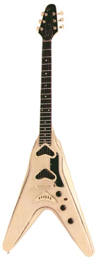 | Flying V Heritage | 1982 | Korina | Antique natural, ebony, white | Accurate reissue of the original: string through body, gold hardware, 3 knobs in line, black plastic pickup surrounds |