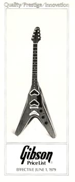 June 1979 Gibson price list, featuring the second generation Flying V II