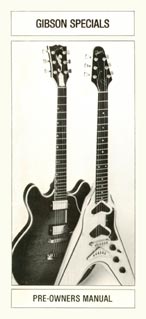 Cover of the 1981 Gibson Specials pre-owners folder, featuring the Flying V II and the active ES-Artist
