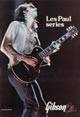 FEATURES: Gold finished carved maple top with laminated mahogany back and neck. Two powerful chrome-plated humbucking pickups. Fast, low-action neck joins body at 16th fret. Three-piece laminated mahogany neck with adjustable truss rod. Graceful single cutaway design. Three-position toggle switch activates either or both pickups. 22 fret rosewood fingerboard with pearl inlays. Double combination bridge and tailpiece. Tune-0-Matic bridge, adjustable up and down and individual fine tuning adjustment for each string. Individual pickup pole pieces. Nickel-plated metal parts with individual machine heads. 17 1/4" long, 12 3/4" wide, 2" deep; scale length 24 3/4".