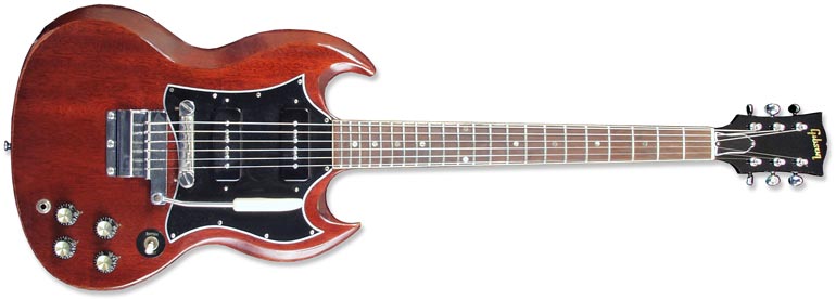 The Gibson SG is a true design classic that has stood the test of time, remaining popular for over half a century. Numerous incarnations have been available, all with the double cutaway 'batwing' body style in common. SG, of course, stands for 'Solid Guitar', as the SG evolved from the first Gibson solid, the Les Paul. In fact the earliest Gibson SGs were actually sold as Les Pauls, despite the new body design, and simplified mahogany-only construction. The list of SG players is a who's who of the guitar. Jimi Hendrix, Eric Clapton, George Harrison, Pete Townsend, Carlos Santana, Angus Young. And so on.