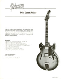 The Trini Lopez Deluxe and Trini Lopez Standard were two fine electric acoustic guitars, produced by Gibson as part of their artist series: signature guitars for Johnny Smith, Barney Kessel and Tal Farlow.