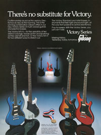 American made, World played The 1983 Gibson catalogue has a double page spread on the Victory series, picturing the MVX guitar (with Super Tune vibrola) and the Standard bass. The Artist bass is mentioned in the text, though the MVII and Custom bass are conspicuous by their absence.