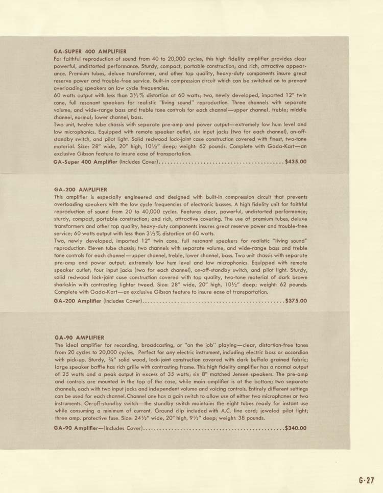 Gibson list prices were as follows: GA90 $340; GA200 $375; GA400 $435 (US zone 1)