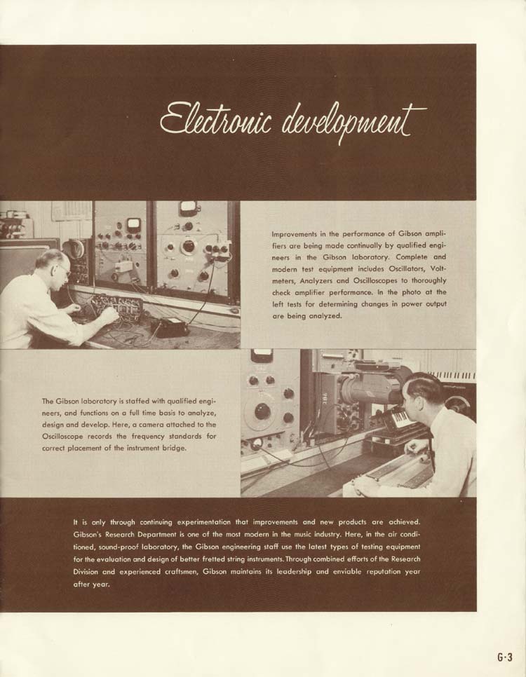 Gibson 1958 electric guitars and amplifiers catalog. Page 3. Electronic development