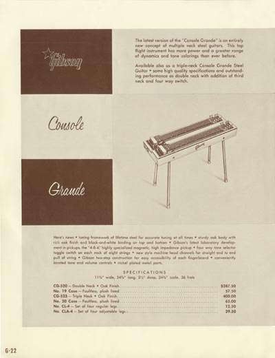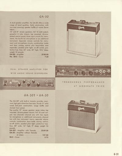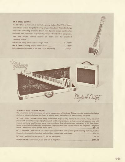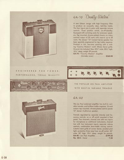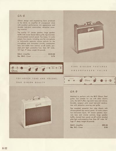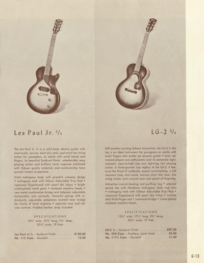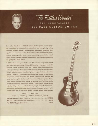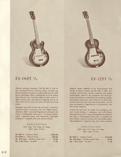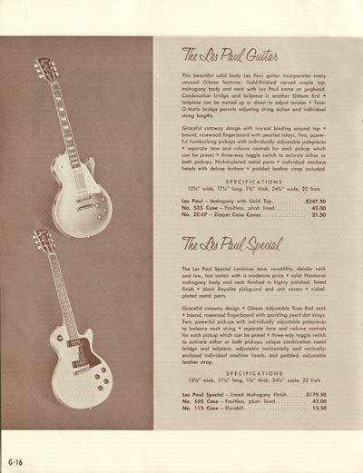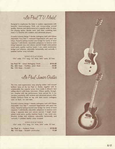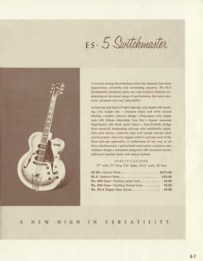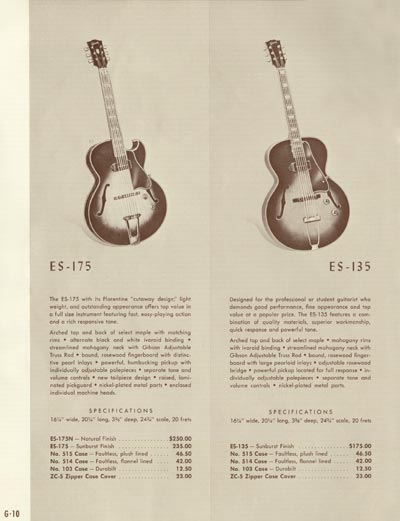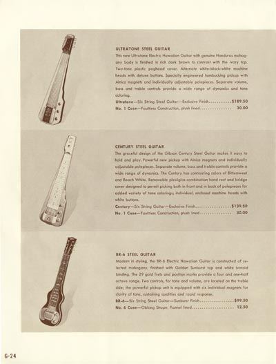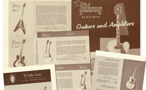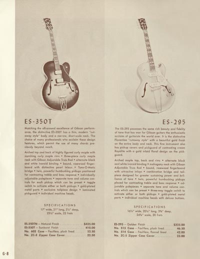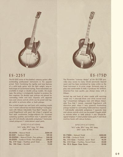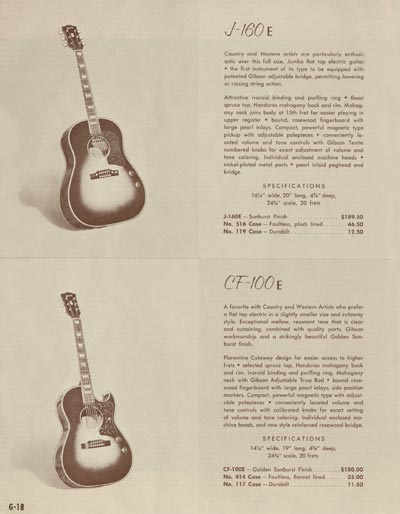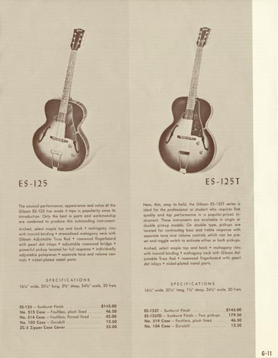 The March 1958 Gibson electric guitars and amplifiers catalog featured the following guitars. Click on the images for full size versions, or click on the model names below to jump to the relevant page.