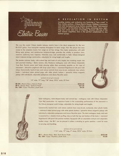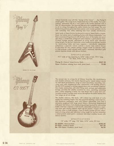 1958 was an important and innovative year for Gibson. Several new models were shipped for the first time, models that have gone on to be classics that define the Gibson brand: the Flying V, Explorer and ES-335TD, aswell as models that didn't quite make it, but are still revered in Gibson folklore, such as the Moderne and Explorer bass. This was, of course, the first catalog to widely illustrate the use of the Gibson Humbuckers that had been introduced the previous year.
