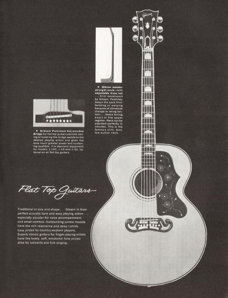 Gibson 1962 guitar and amplifier catalogue. Page 33. Flat top guitars. Featuring a J-200N flat top acoustic