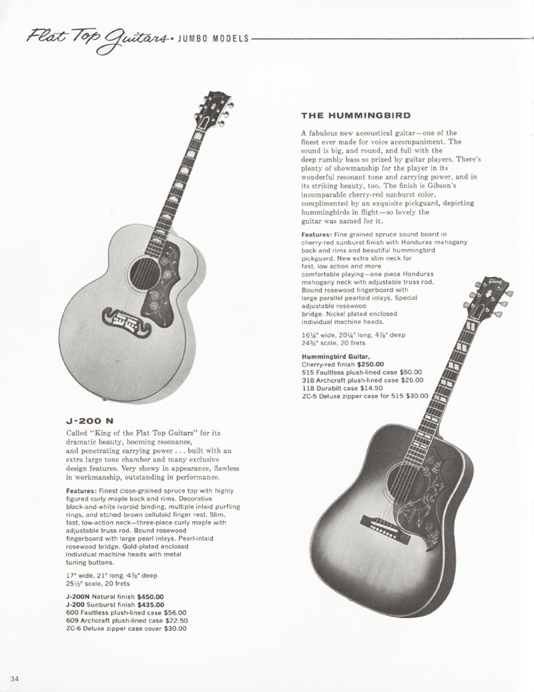1962 prices for these models were as follows: J-200 $435 ($450 natural finish); Hummingbird $250.