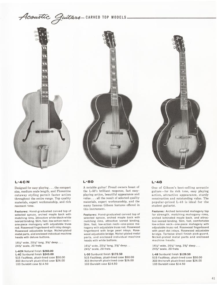 1941 Gibson L-50 Archtop Hollowbody Acoustic Vintage Sunburst w / HSC