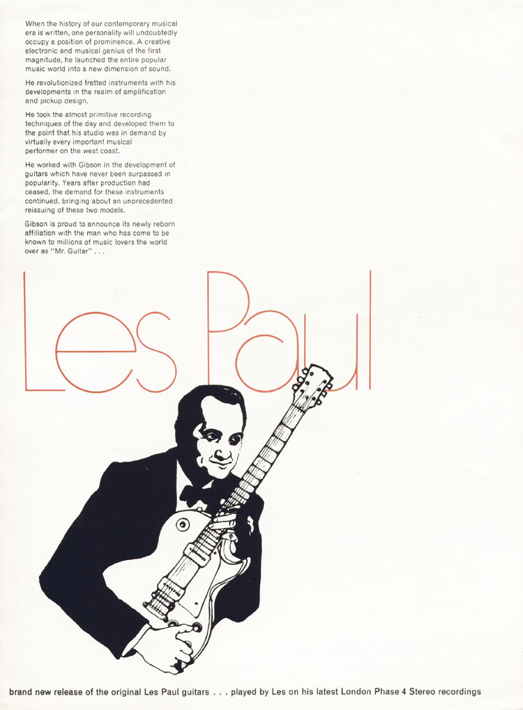 Gibson Les Paul 1968 Les Paul Brochure. Page 2 features an illustration of Les Paul with the new Les Paul Standard.