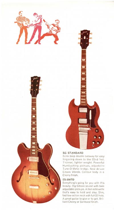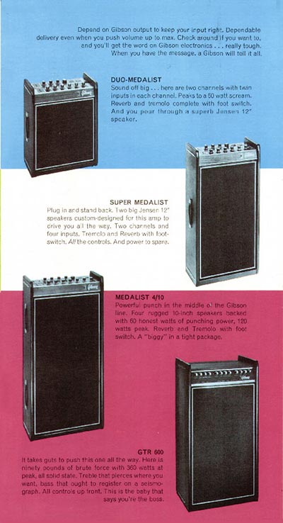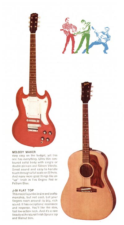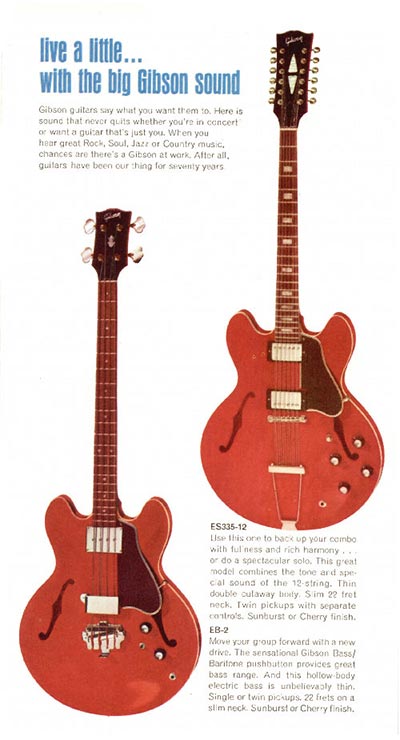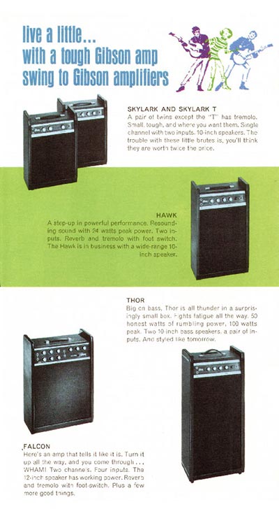 Broadly speaking, there was an example of each kind of guitar; a solid body, a semi acoustic, a twelve string, a bass. And so on. All guitars are proven sellers rather than the specialist instruments produced in smaller numbers. In each case, images are the same as those first used in the 1966 Gibson catalogue. The amplifiers, on the other hand, are all new (or in the case of the Skylark and Falcon re-designed) models, and are only listed in 1968 price lists for the first time.