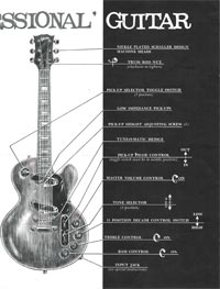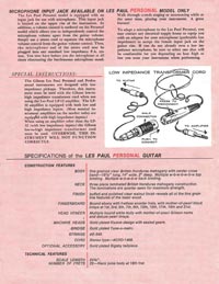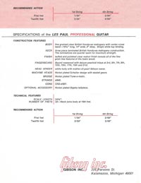 The new Les Paul guitars were really very fine looking and performing instruments, so it is somewhat surprising that this brochure (and the equivalent for the Les Paul Bass) were so lacklustre. They do contain all the required information (and more!) but are really visually unappealing, drably coloured with uncomfortably proportioned illustrations. Perhaps there were deadlines to produce these brochures, and example instruments were not ready to photograph. Or maybe the financial pressures Gibson faced in 1969 prevented a glossier publication. Whatever the reason it is surprising.