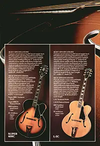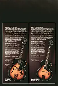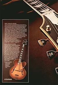 This booklet shows Gibson's higher end offerings: predominantly high-end carved top electric acoustics; jazz guitars made from the finest materials, by the top craftsmen at Kalamazoo, with the most elaborate ornamentation. Naturally, these were the most expensive instruments Gibson offered, some produced in very small numbers indeed - for example only nine Citations were shipped beteen 1969 and 1979.