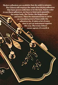 Gibson Custom Order guitars are unequalled anywhere because their materials, designs and craftsmanship are unavailable anywhere else. Close, even-grained spruce from trees 450 to 500 years old; solid woods, not veneered; hand carved and graduated tops and backs; precision "f" holes based upon Stradivarius violin construction... it's no wonder that these instruments are considered collector's items - rare masterpieces.