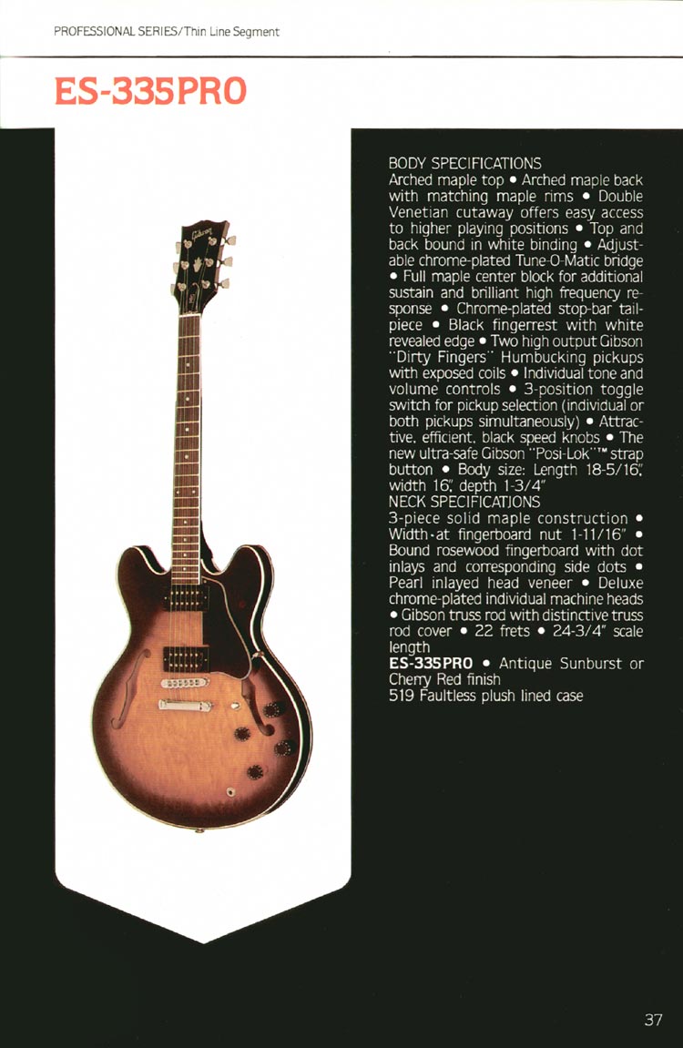 Gibson 1980 guitar and bass catalog. Page 37. Details of the ES-335PRO