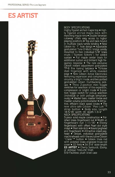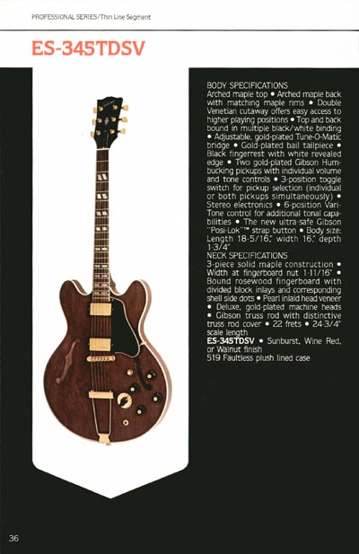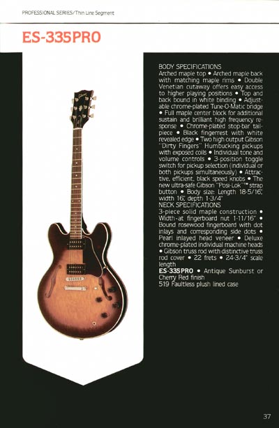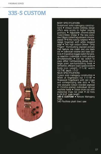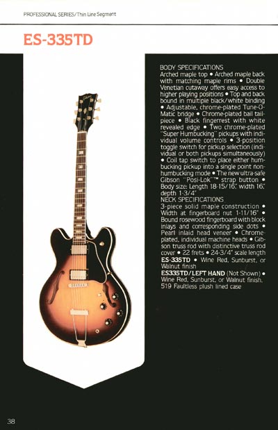 The catalog contains a number of new models: the solid body 335S series, the Sonex-180 series and the Howard Roberts Fusion. It featured the following guitars.