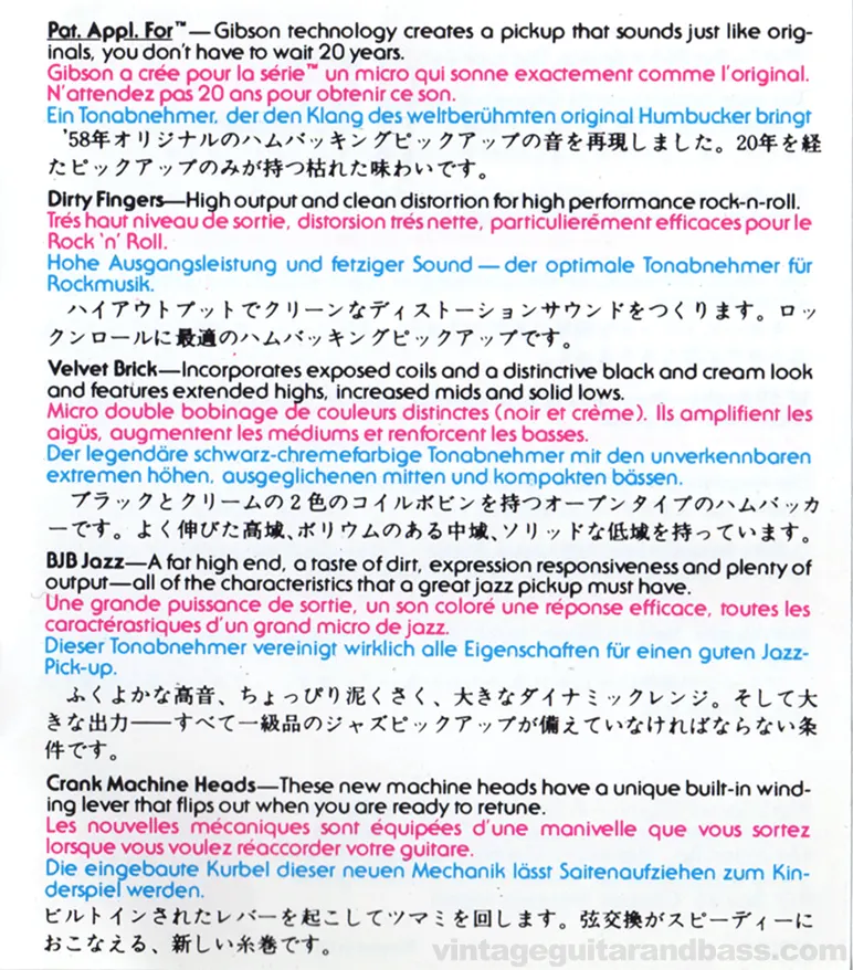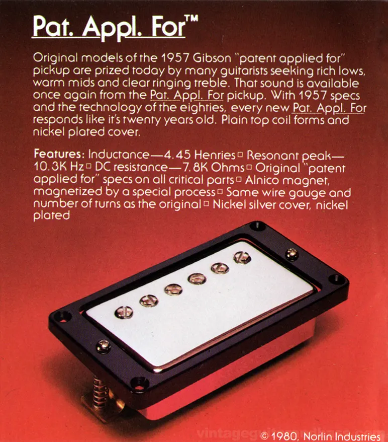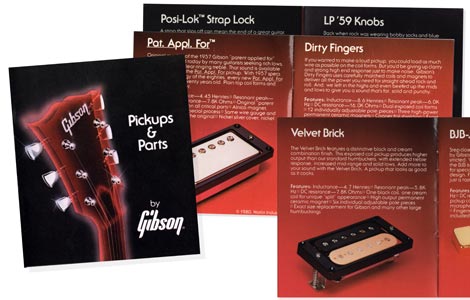 And a part of this was this brochure. Gibson's first colour parts catalog, and the first to include various new pickups such as the "Pat. Appl. For" and Velvet Brick.