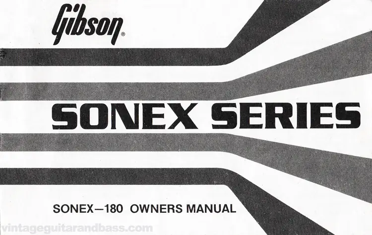 The cover of the Sonex-180 owners manual has a striking design, perhaps representing the strings of a guitar as they reach the headstock. Gibson produced numerous owners manuals at this time, each with the same style gibson logo, but a different illustration and font style.