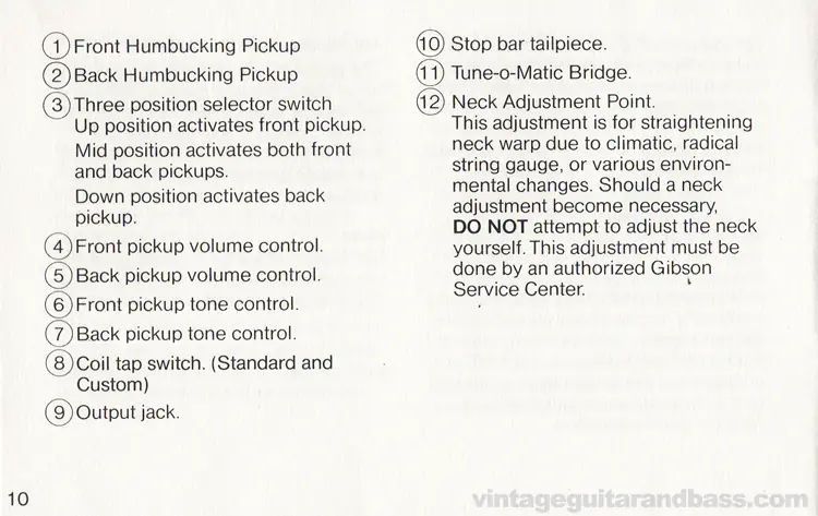 The guitar pictured is a Sonex Custom; the coil tap switch (8) is only fitted to the higher end models, the Sonex Standard and Sonex Custom.