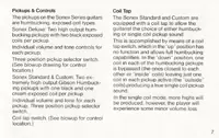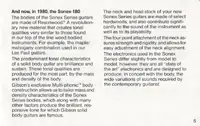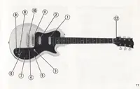 The first five, and last five pages of this booklet are fairly generic (largely similar pages appear in a number of owner manuals from this period), with six pages of Sonex-specific information starting on page 6, with pickups, associated controls and description of the coil tap on page 7, and a labelled diagram of the guitar on pages 10 and 11.