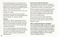 The final section contains information on strings: how to change them, how often, and what strings to use (naturally they suggest Gibson!). The strings fitted to the guitar are listed on the back page - in this case G-040H (0.012-0.058).