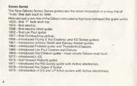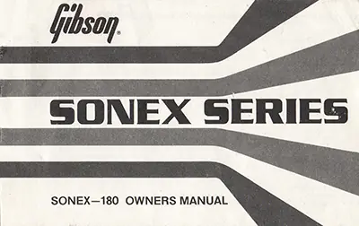 The Gibson Sonex series was launched in mid 1980, after being shown at the June 1980 NAMM show in Chicago. This owners manual was produced around the same time. It contains information pertaining to three models: the Sonex-180 Deluxe, Sonex-180 Standard and Sonex-180 Custom. 16 pages, black and white printing, 5 1/2" x 3 1/2".
