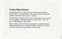 Please take a few minutes to acquaint yourself with the following information, and then begin enjoying a lifetime of music with your new Gibson Sonex-180.